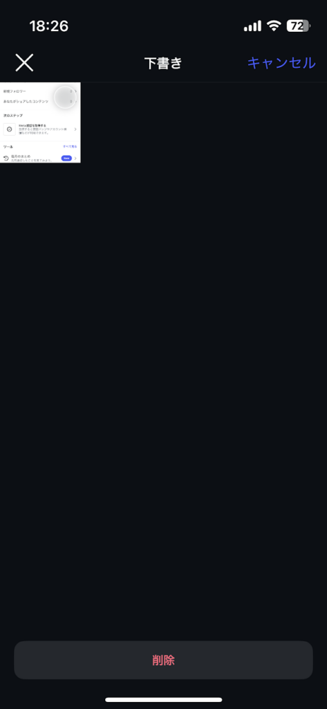 画面下部にある「下書きを保存」ボタンをタップするか、編集画面左上の「×」を押して「下書きを保存」を選択します。