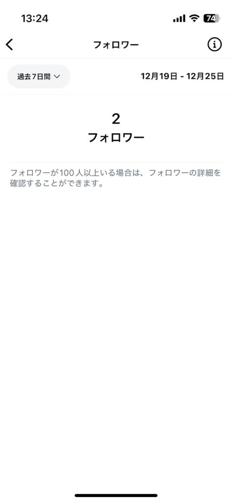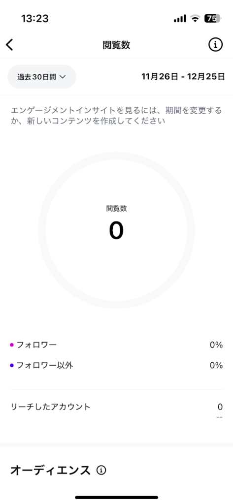 - 詳細なオーディエンスデータを見るにはフォロワー100人の壁を越える必要がある