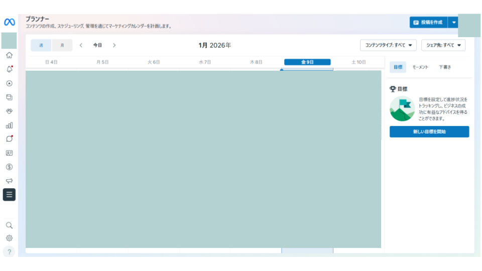 Meta Business Suiteを利用すれば、PC上の大きな画面でカレンダーを見ながら効率的にスケジュール管理や投稿設定を行えるため、必要に応じて活用しましょう。