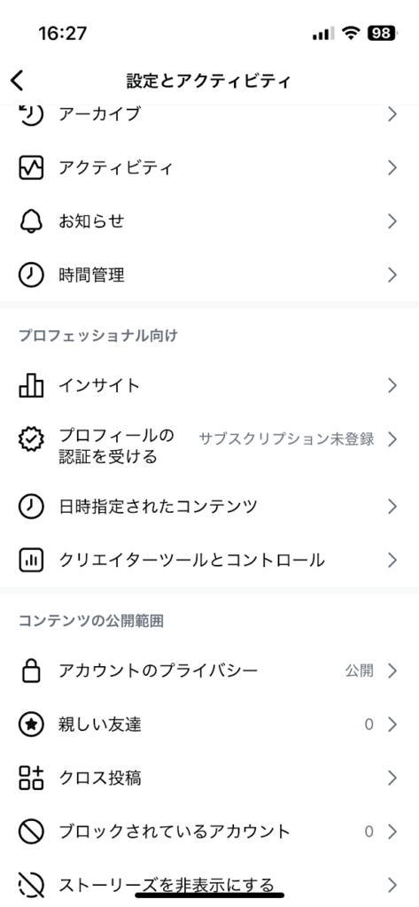 予約済みの投稿を確認・編集するには、スマホアプリのプロフィール画面またはメニュー(三本線)にある「設定とアクティビティ」からアクセスします。