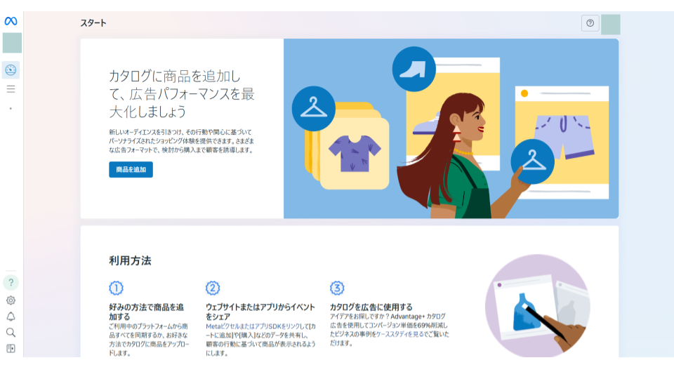 必須条件を確認し準備が整ったら、いよいよショップの開設手続きに進みます。開設は主にFacebookの「コマースマネージャ」というツールを使って行います。