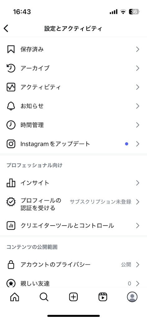 Instagramのショッピング機能を利用するには、アカウントの種類が『プロアカウント』に設定されている必要があります。
