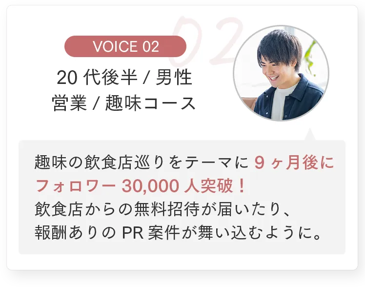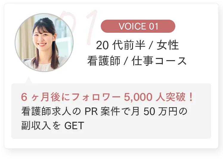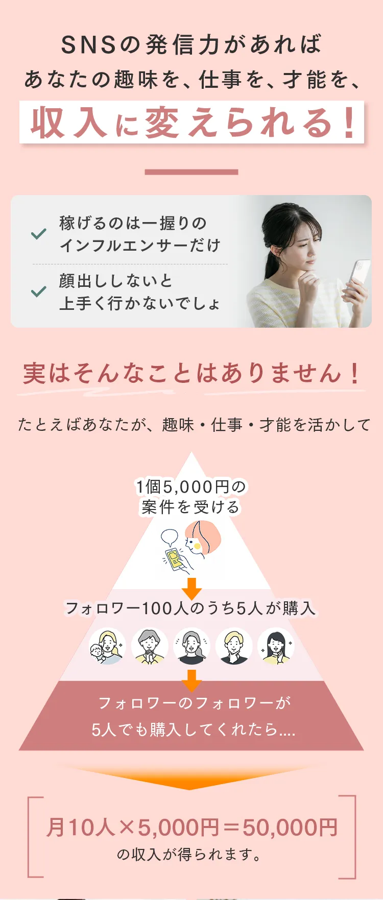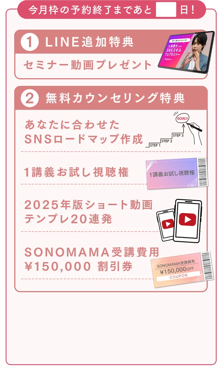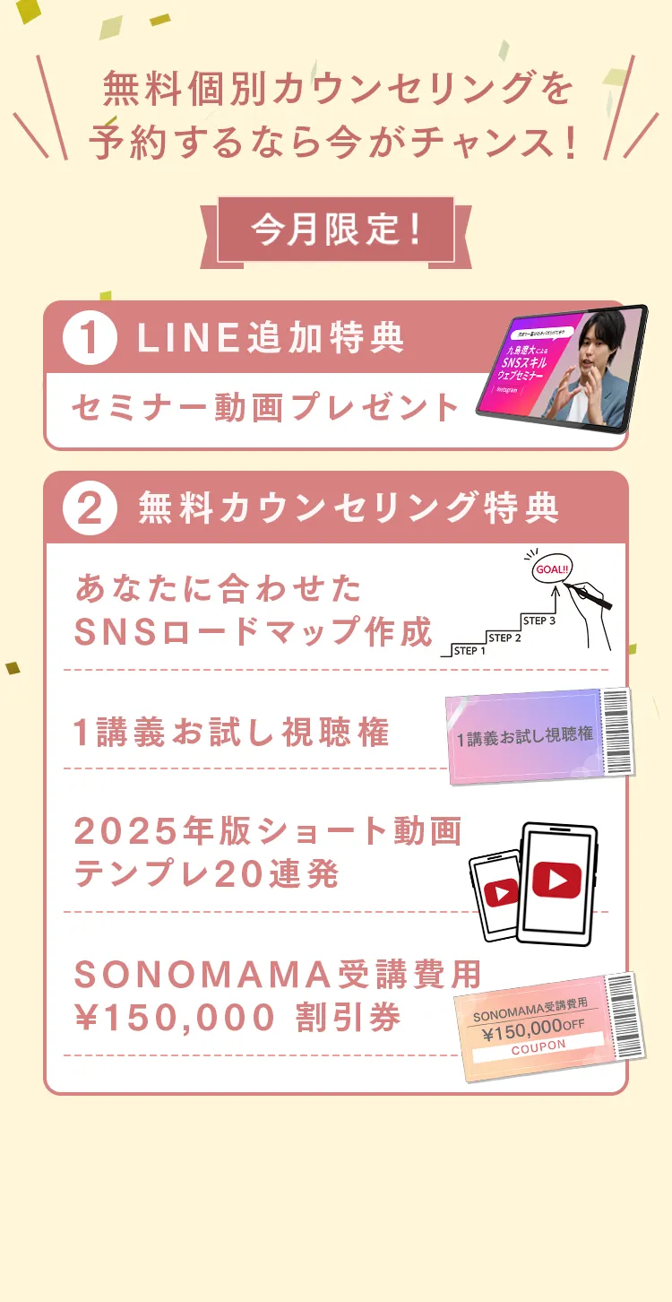 「SONOMAMA」は未経験でも十分に フォロワーを増やすノウハウと知識を 学べるカリキュラムと環境を用意して います。
